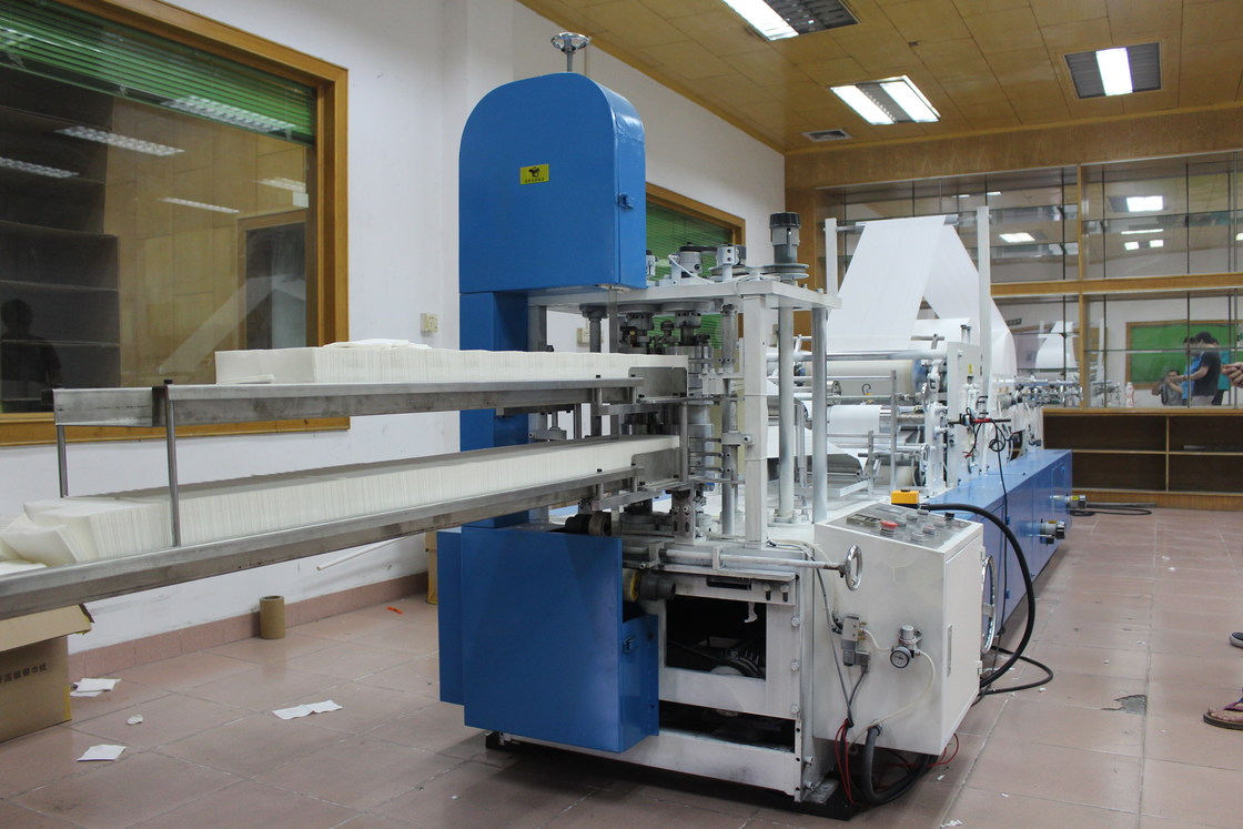 เครื่องทำกระดาษทิชชู่ผ้าเช็ดปาก 3000 แผ่นต่อนาที Full Auto ใช้สำหรับทำสี่เหลี่ยมและสี่เหลี่ยมโดยการนูน พับ นับอิเล็กทรอนิกส์ และตัดลายนูนและพับอัตโนมัติโดยไม่ต้องพับด้วยมือ.ขนาดเครื่องแตกต่างกันตั้งแต่ 200 มม. ถึง 430 มม. เพื่อให้เป็นลูกค้าเครื่องได้รับการปรับแต่งให้เหมาะกับลูกค้าและสามารถระบุฟังก์ชันเพิ่มเติม เช่น การพิมพ์สีและการเคลือบได้ความเร็วสำหรับเครื่องทำผ้าเช็ดปากสองสำรับคือ 3000 แผ่น / นาทีสำหรับขนาด 200 มม. และ 2200 แผ่น / นาทีสำหรับขนาด 300 มม.
